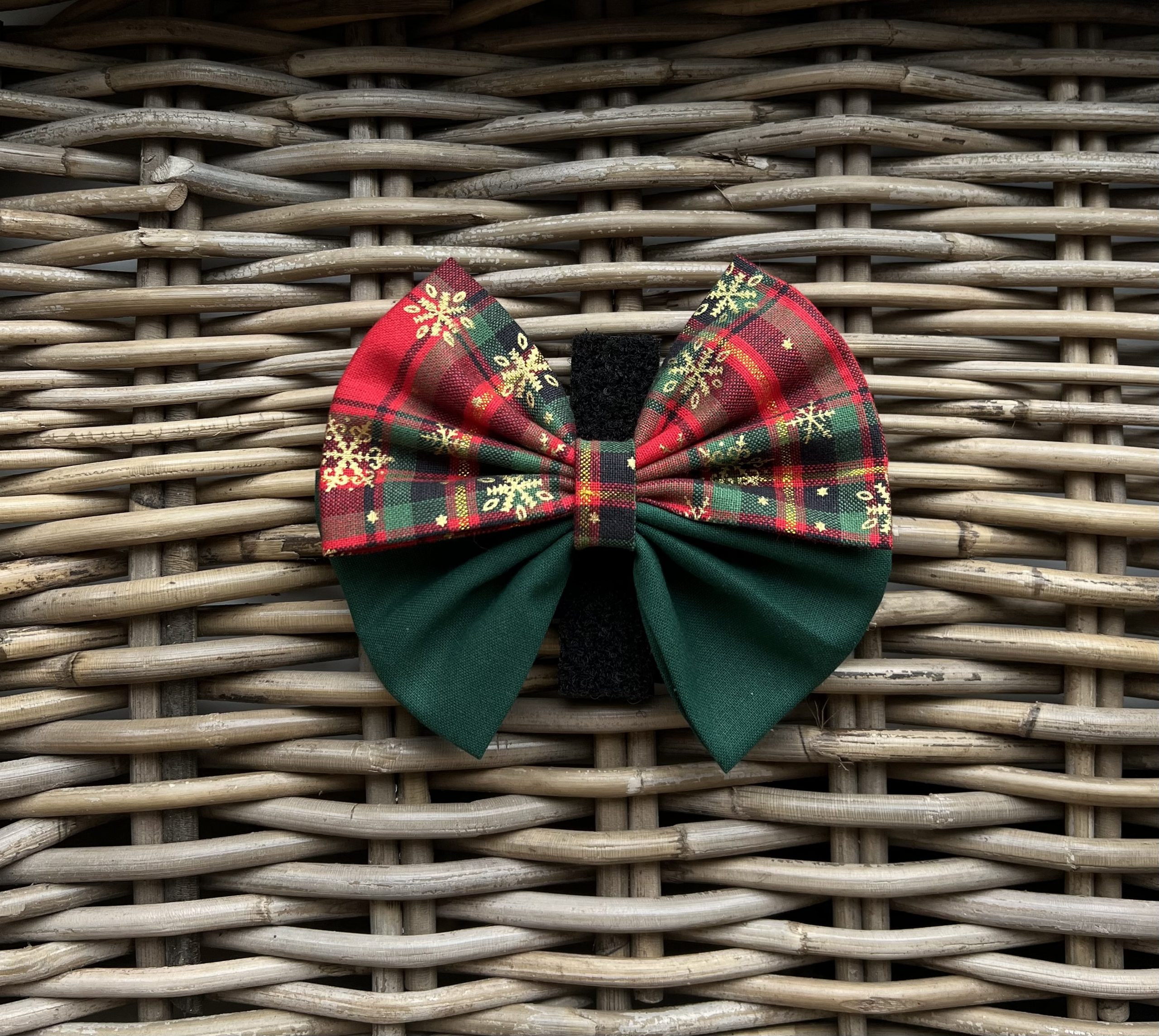 Two Tone Bow- Red Tartan & Green